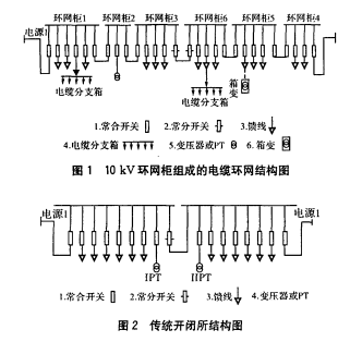 2.2環(huán)網(wǎng)柜、一進(jìn)四出電纜分支箱構(gòu)成的電纜環(huán)網(wǎng)構(gòu)造與傳統(tǒng)開閉所的比擬剖析
